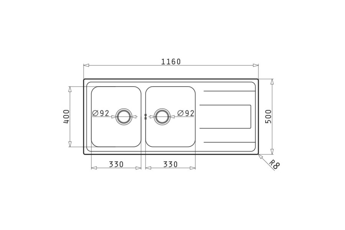 Bowl: 2Bowl Dimensions: 330x400x190mmMaterial/Finish: PolishedInstallation: InsetTap holes: 0Minimum Base Unit: 80cmOverflow: Bowl