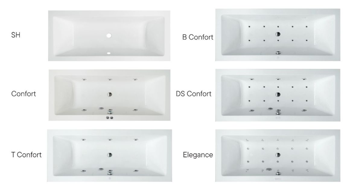 Optional:Hydromassage Systems: Confort, T Confort, B Confort, DS Confort, Elegance