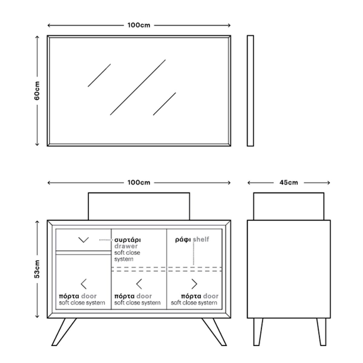 Base 100x45x53cmWashbasin SCALINO 55x38cmMirror 100x60cm
