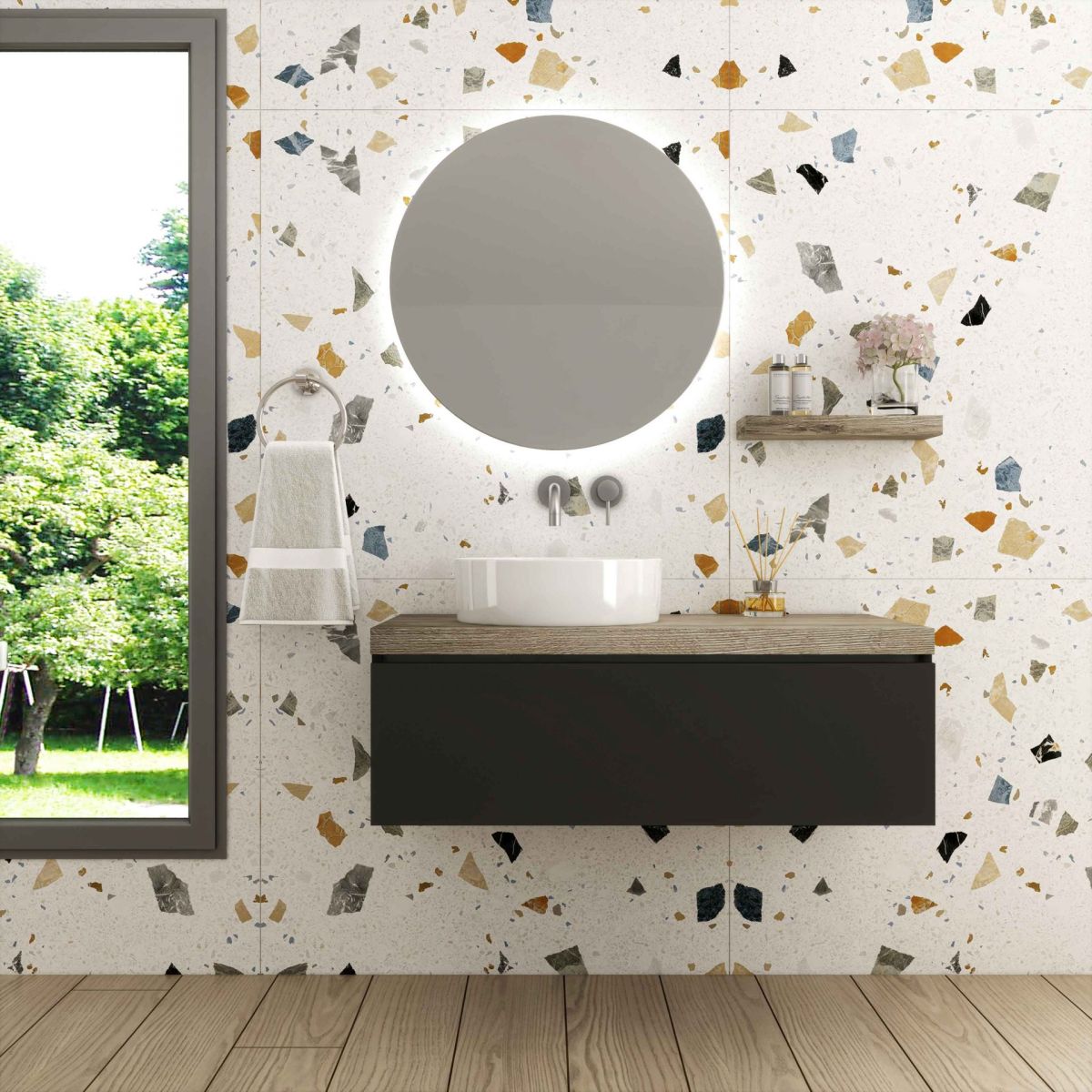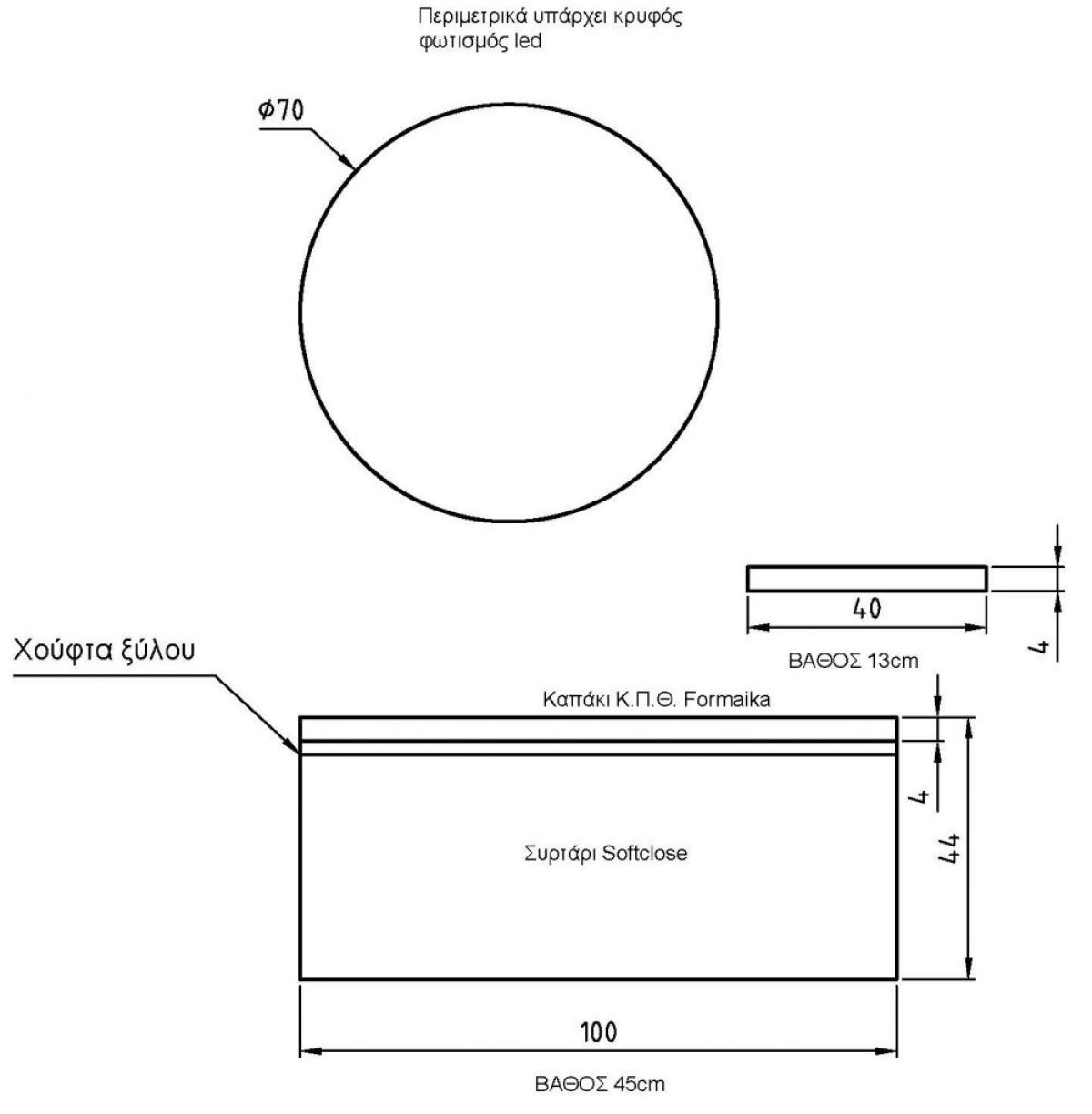 Base 100x44x45Mirror Φ70 with a hidden LED lightCountertop Marine Plywood Formica F605Wash Basin Comfort F40
