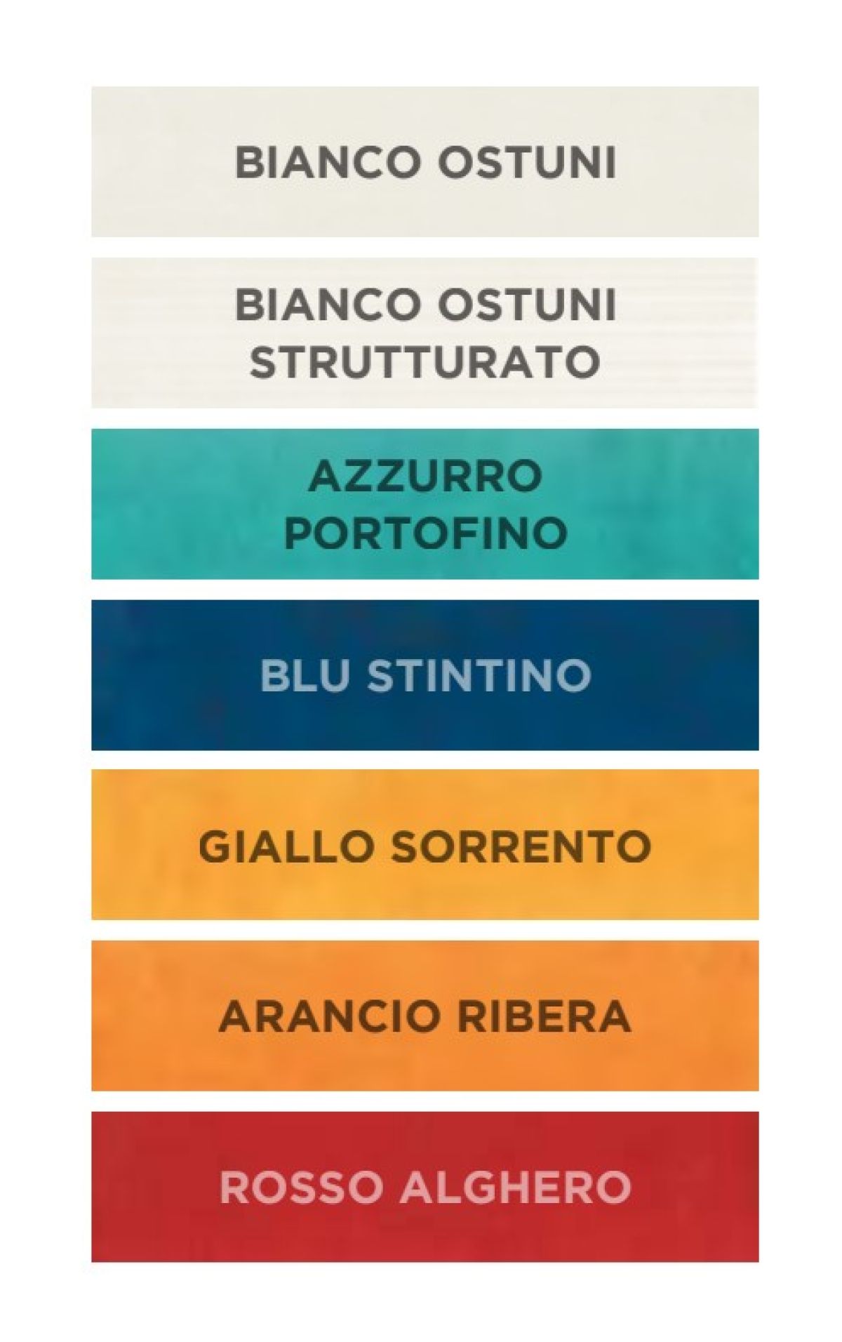 Blu Stintino, Giallo Sorrento, Arancio Ribera, Rosso Alghero