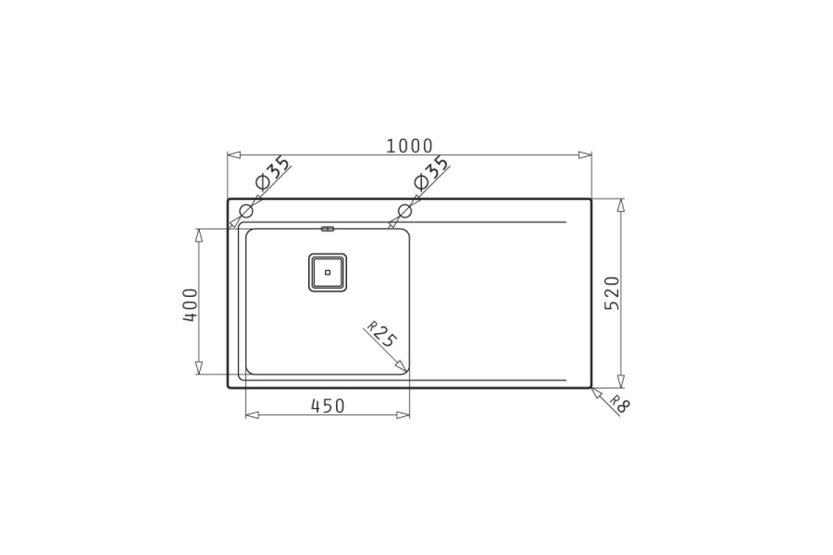 Bowl: 1 Bowl position: LeftBowl Dimensions: 450 x 400 x 200mmMaterial/Finish: BrushedInstallation: Flushmount/ InsetTap holes: 2 tap holesMinimum Base Unit: 50cmOverflow: Bowl