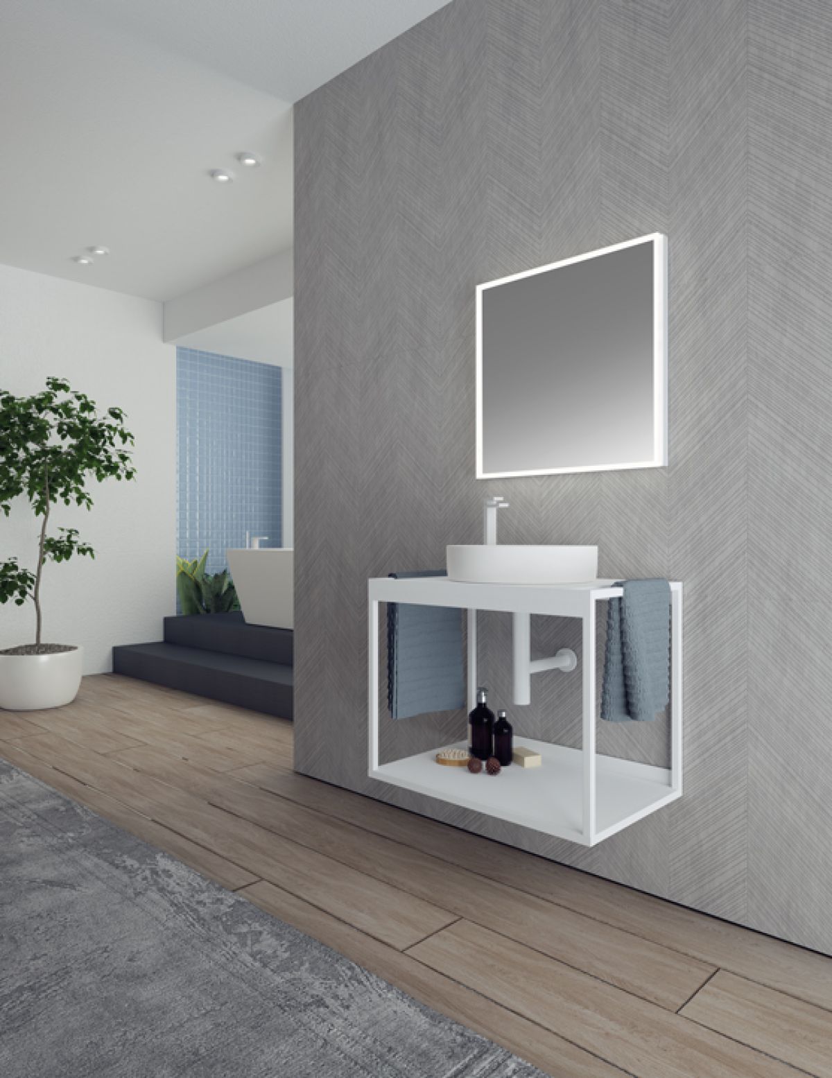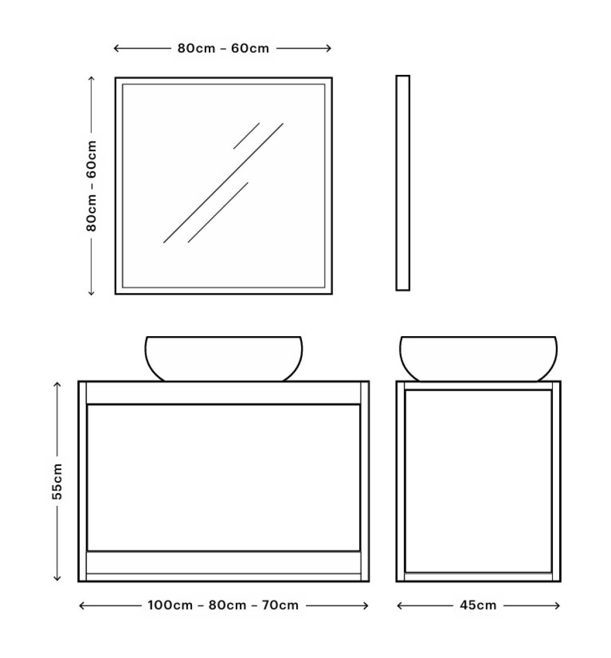 Base 70/80/100x45x55cmWashbasin SUIT WHITE Φ40cmWorktop SOLID WHITE 12mmShelf SOLID WHITE 12mmMirror ARPIL SQUARE 80x80cm