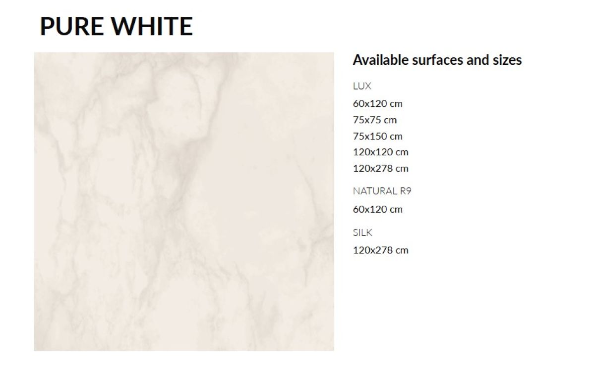 DimensionsSilk:120x278cmLux: 120x278cm/120x120cm/75x150cm/75x75cm/60x120cmNatural:120x120cm/60x120cm