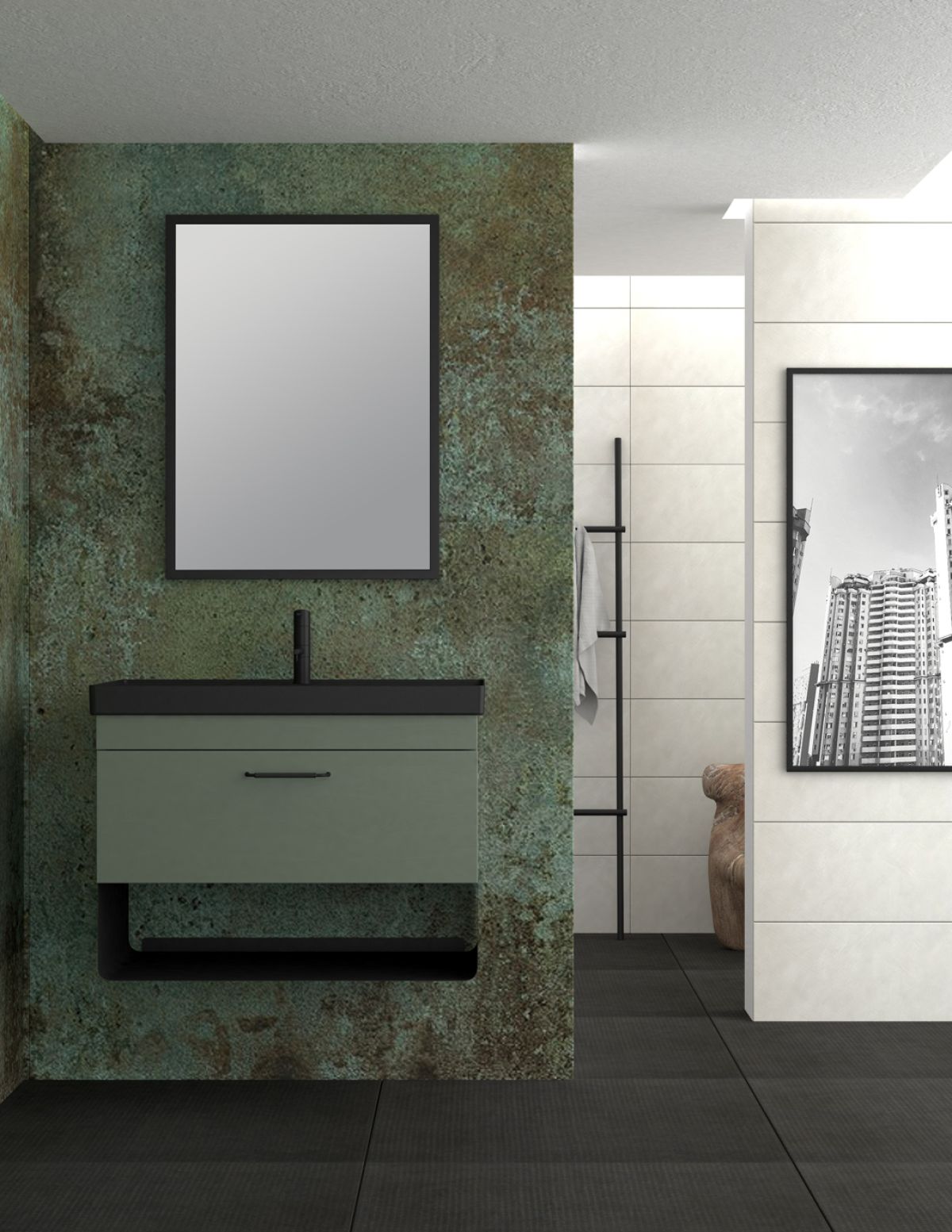 Base 77/97x43x35-20cmWashbasin ARYA BLACK 80x45cm Mirror RULER 60x80cm