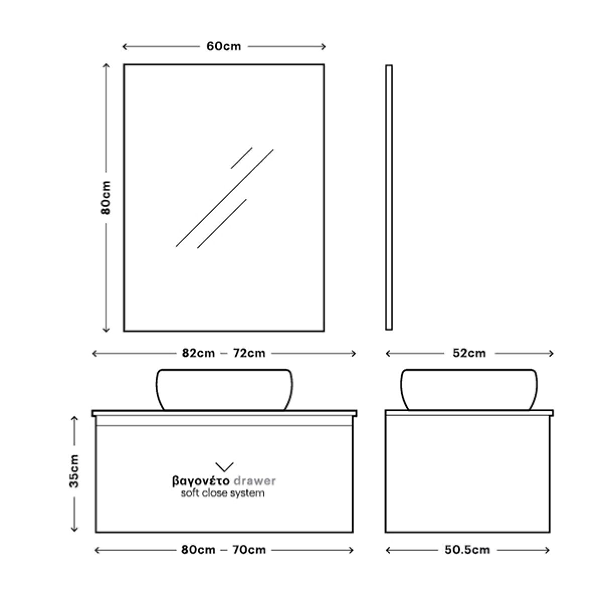 Base 80/70x50,5x35cmWashbasin VISION Φ42cm Mirror 60x80cmWorktop PLYWOOD 82/72cm