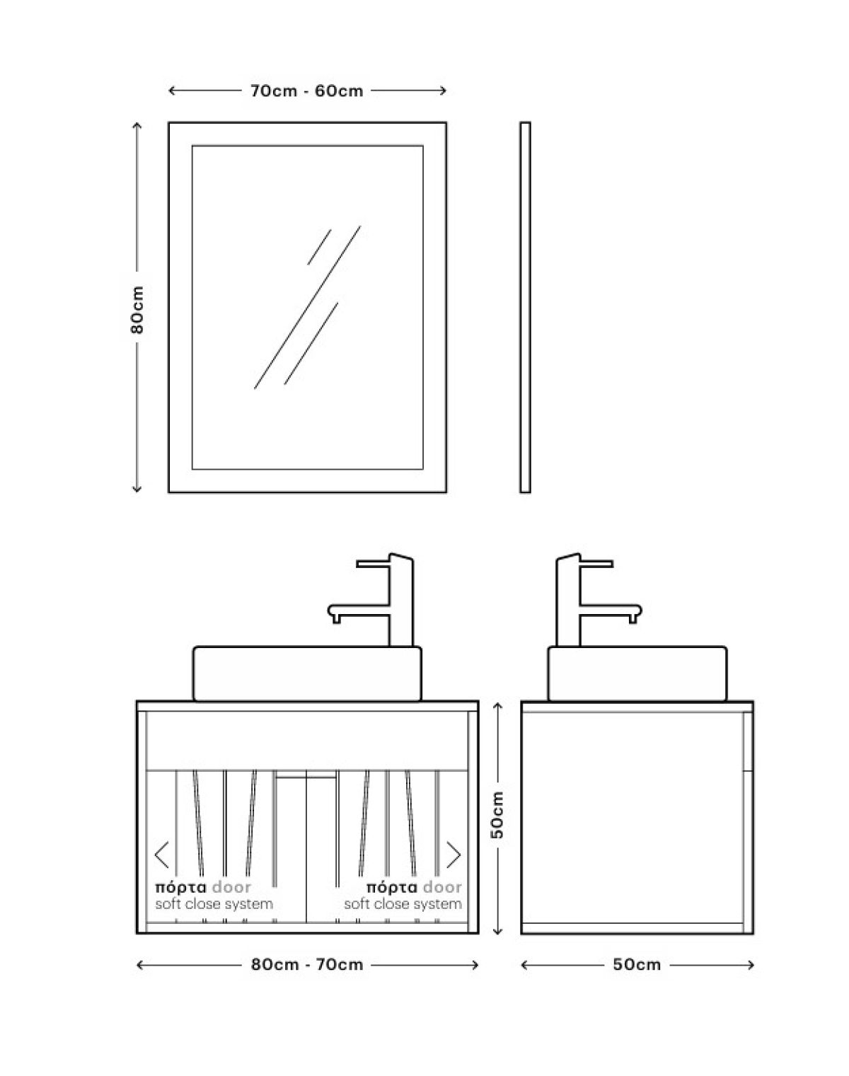 Base 70/80x43x55cmWashbasin ONE BLACK Φ46cm Mirror ENG 70x80cm