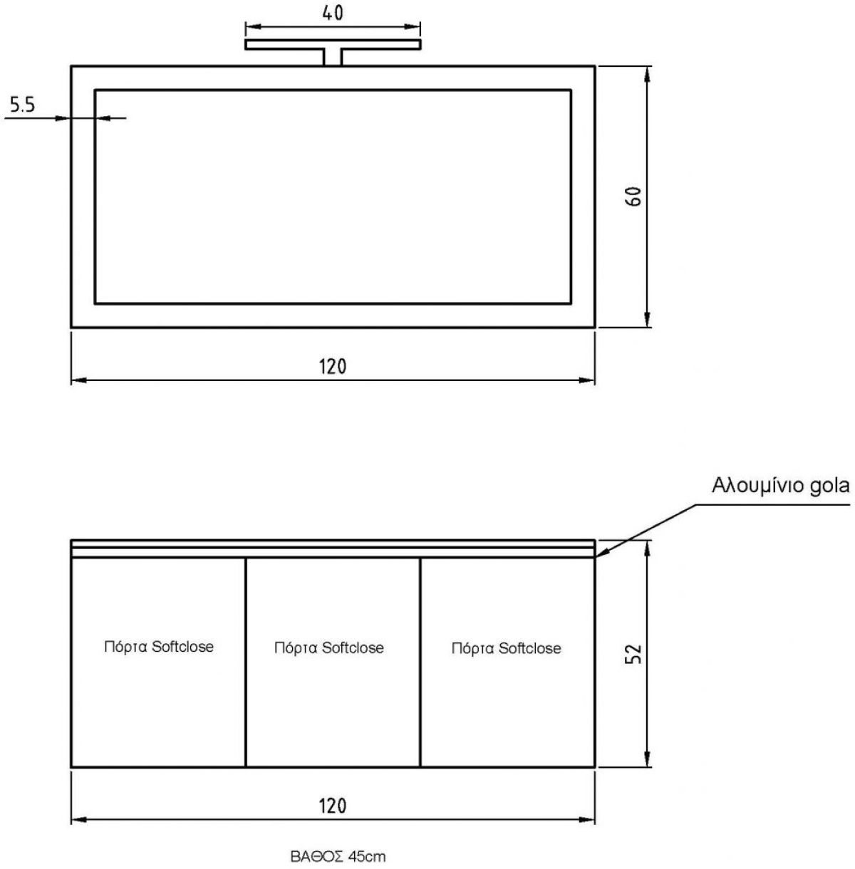 Base 120x52x45Mirror with a frame 120x60Wash basin Rover Stone