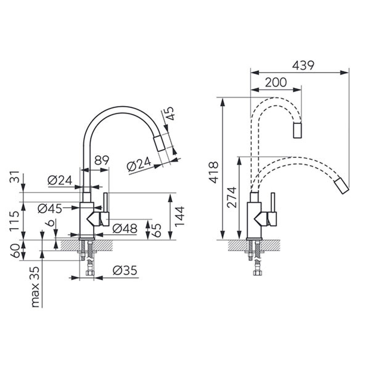 - ceramic cartridge- single hole assembly- flexible spout- possibility to freely shape the spout