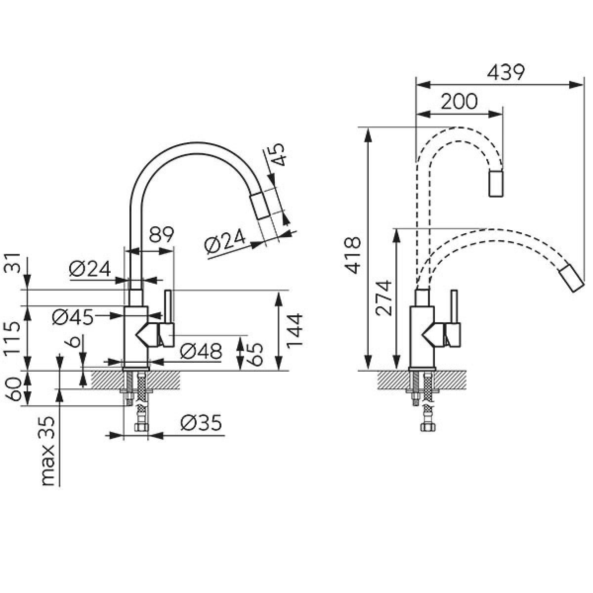 - ceramic cartridge- single hole assembly- flexible spout- possibility to freely shape the spout