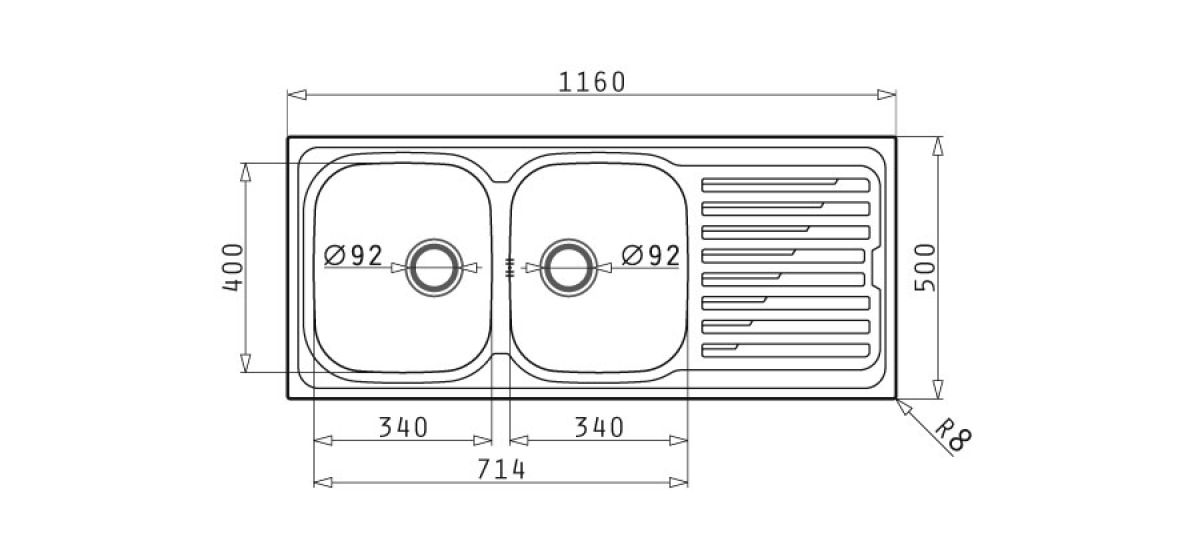 Bowl: 2Bowl Dimensions: 340 x 400 x 190mmMaterial/Finish: PolishedInstallation: InsetTap holes: 0Minimum Base Unit: 80cmOverflow: Bowl