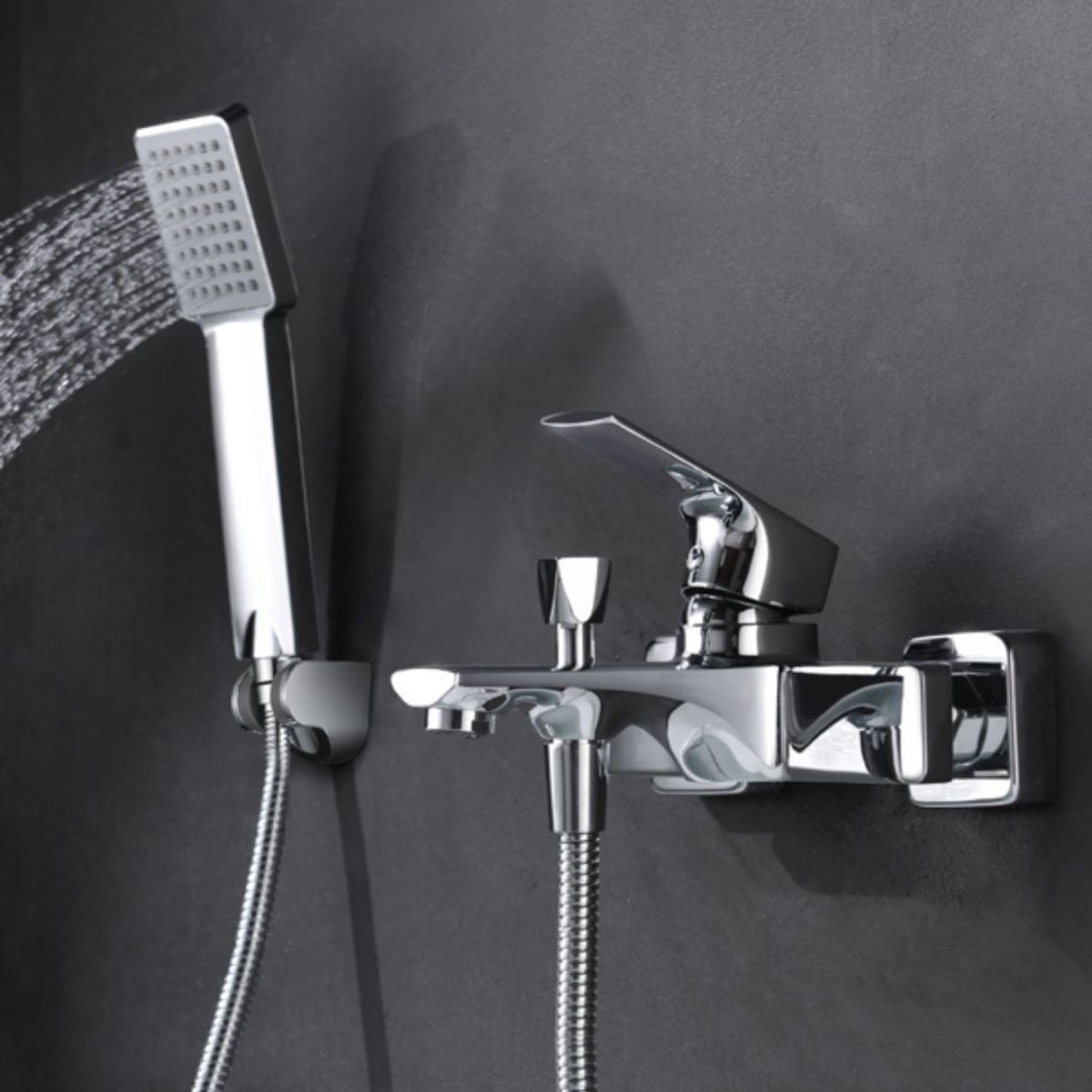 ✓ Chrome-plated brass bath/shower faucet.