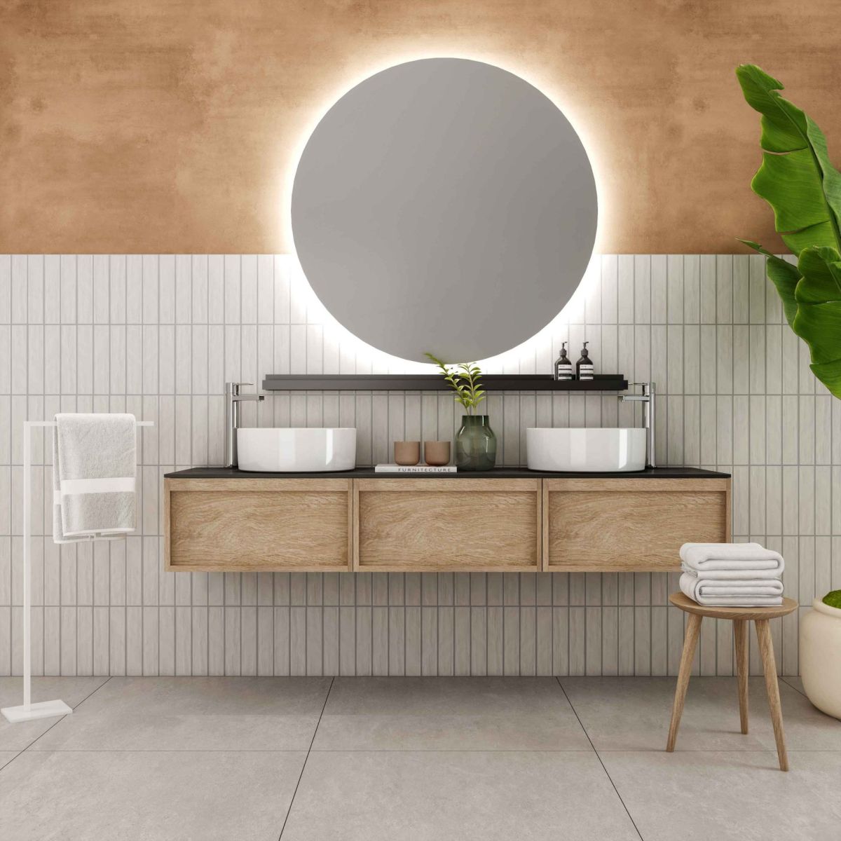 Base 180x31x45Mirror with hidden LED light Φ90Compact Countertop 5156