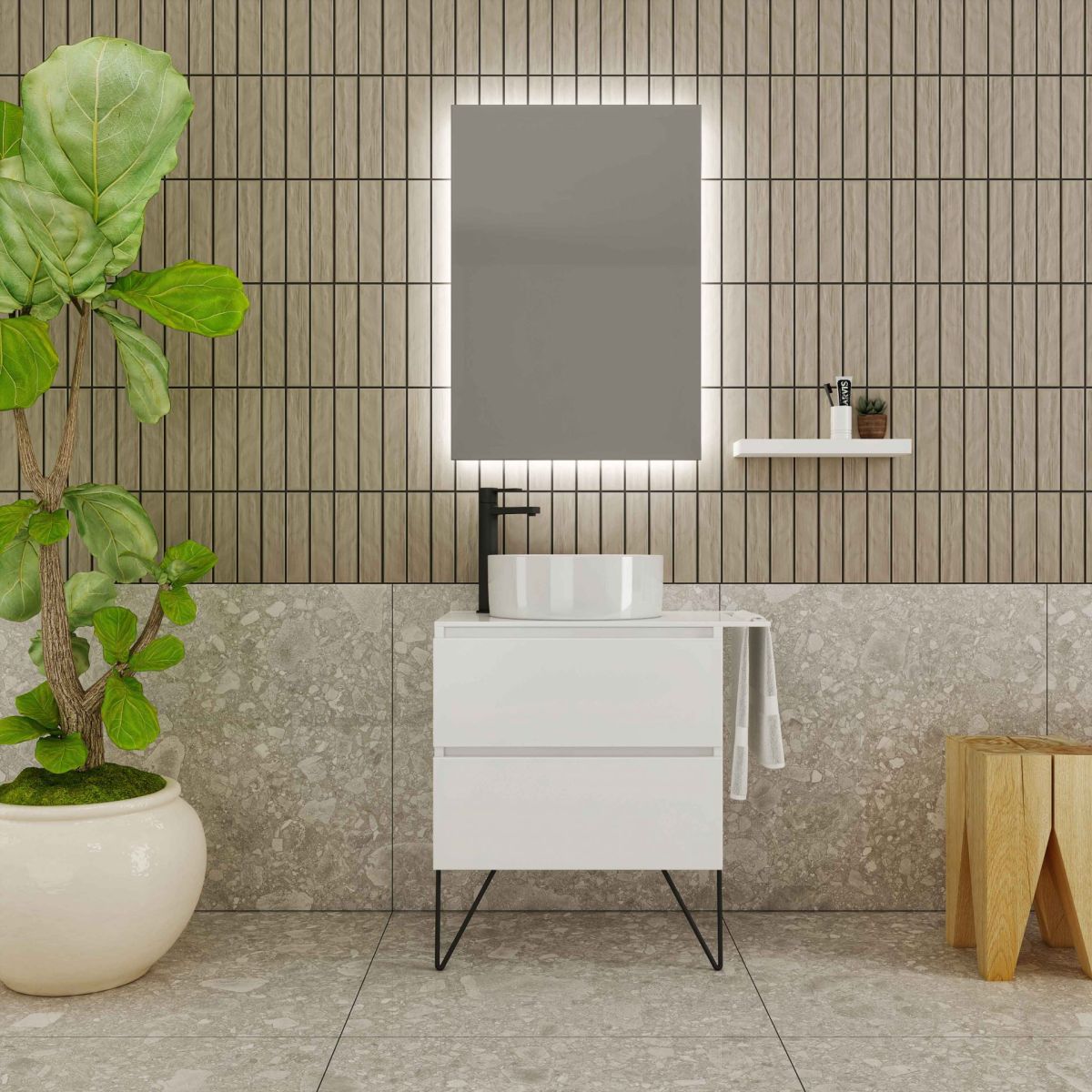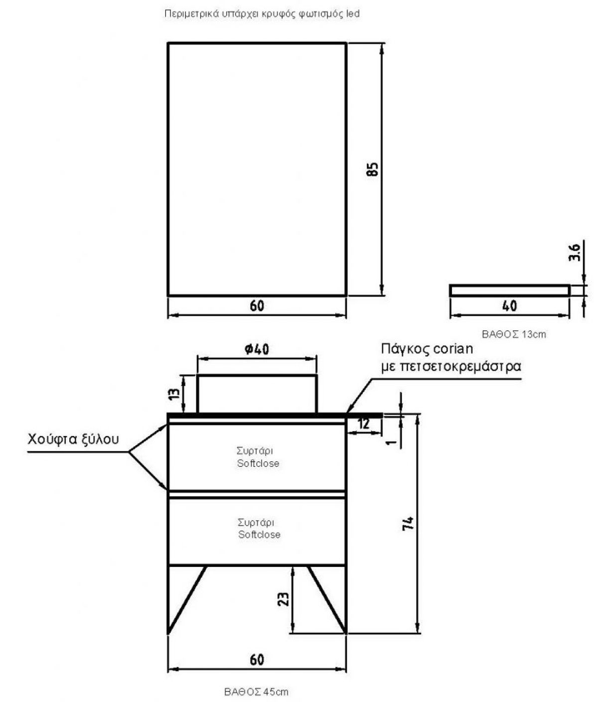 Base 60x74x45Mirror 60x85 with a hidden LED lightCountertop Corian
