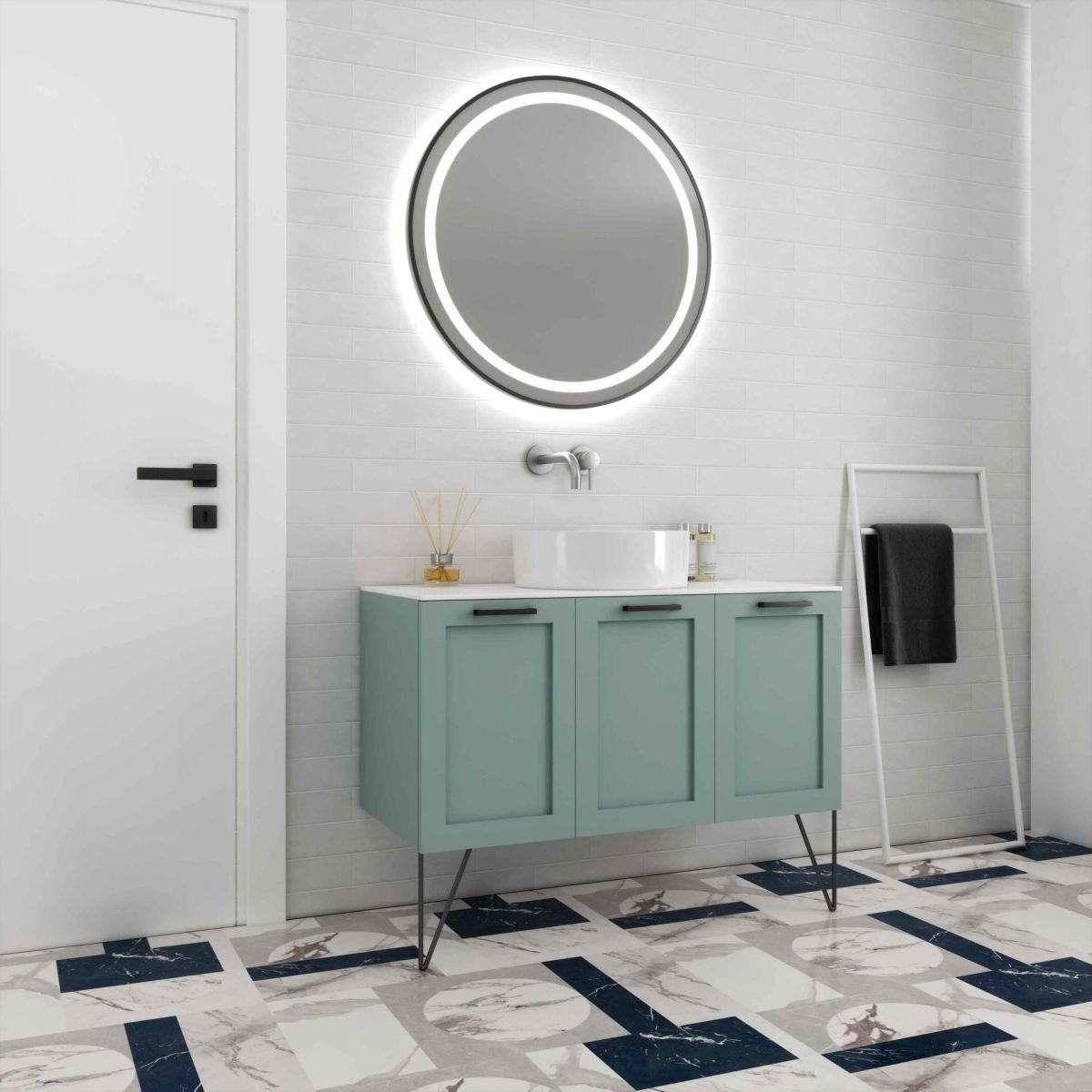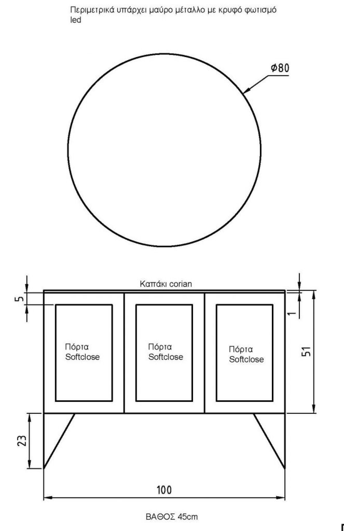 Base 100x51x45Mirror Φ80 with a black frame & hidden LED lightWash basin Comfort F40