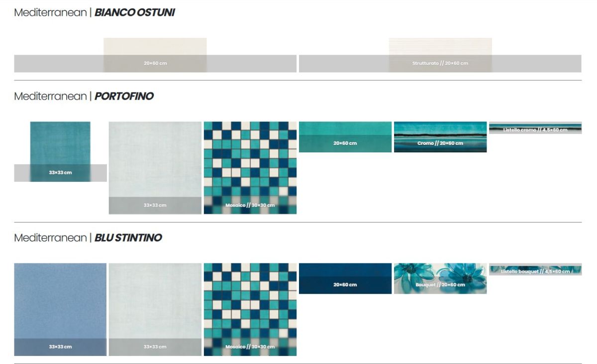 Bianco Ostruni, Bianco Ostruni Strutturato, Azzurro Portofino,