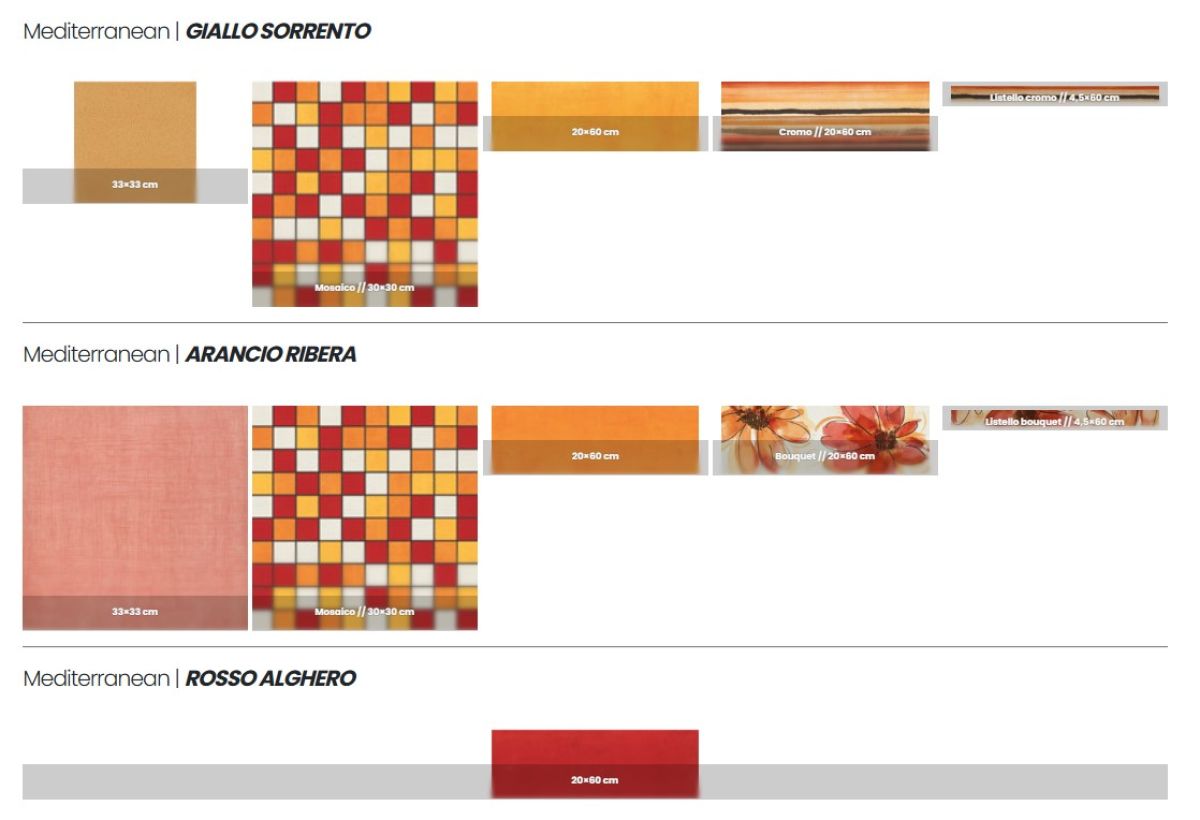 Blu Stintino, Giallo Sorrento, Arancio Ribera, Rosso Alghero