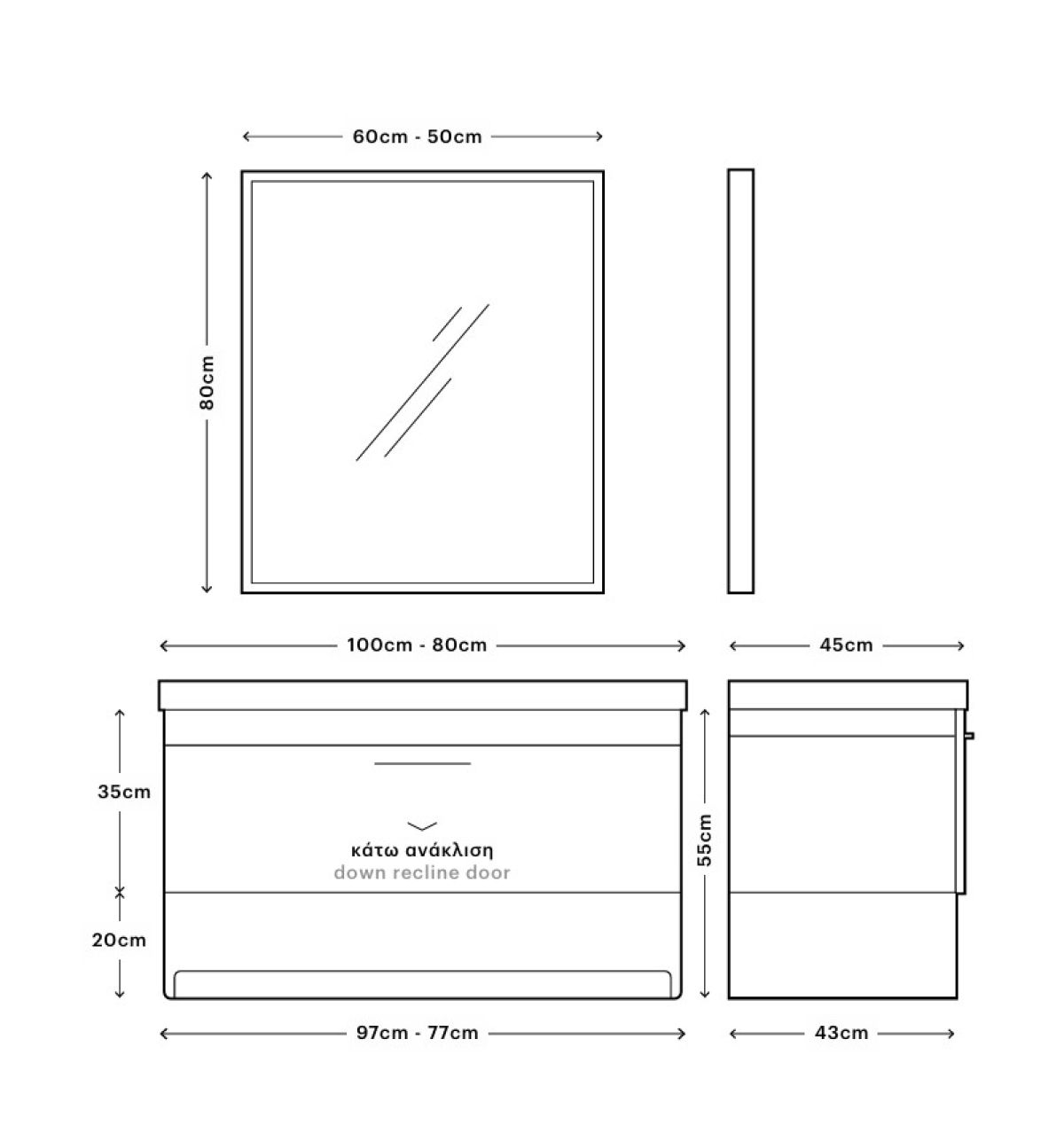 Base 77/97x43x35-20cmWashbasin ARYA BLACK 80x45cm Mirror RULER 60x80cm