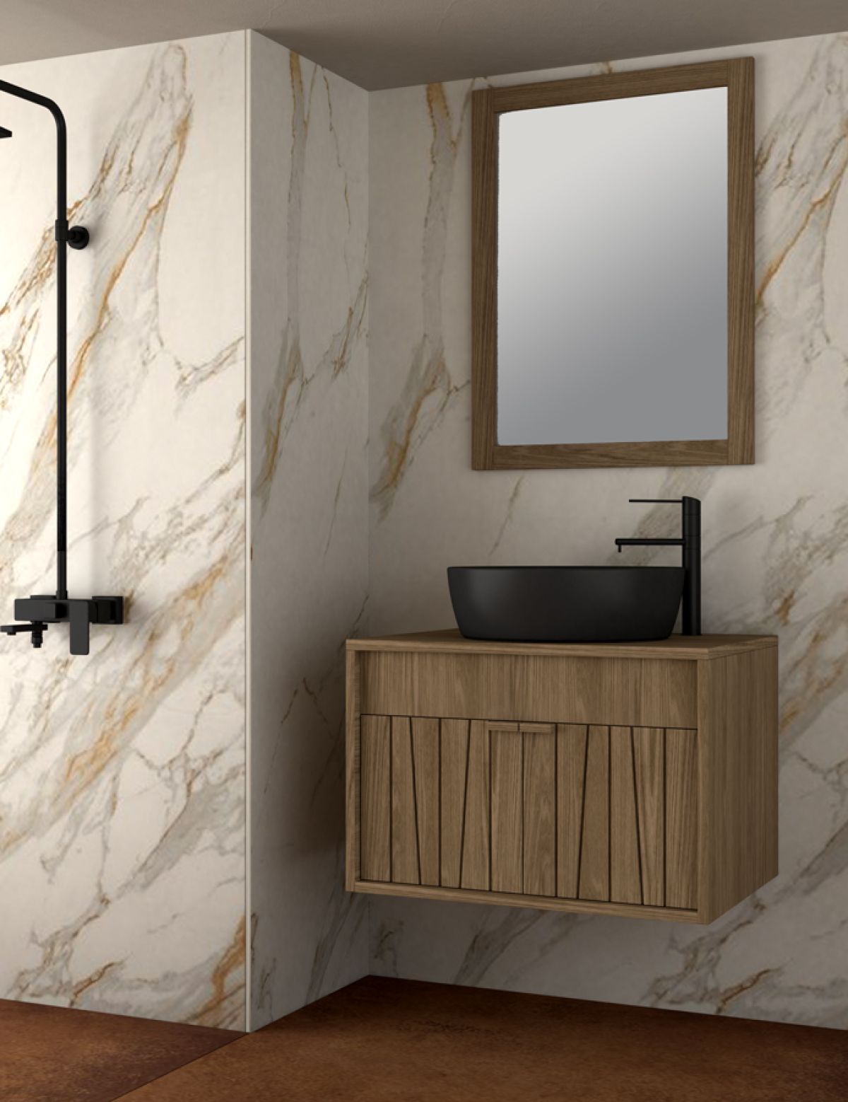 Base 70/80x43x55cmWashbasin ONE BLACK Φ46cm Mirror ENG 70x80cm