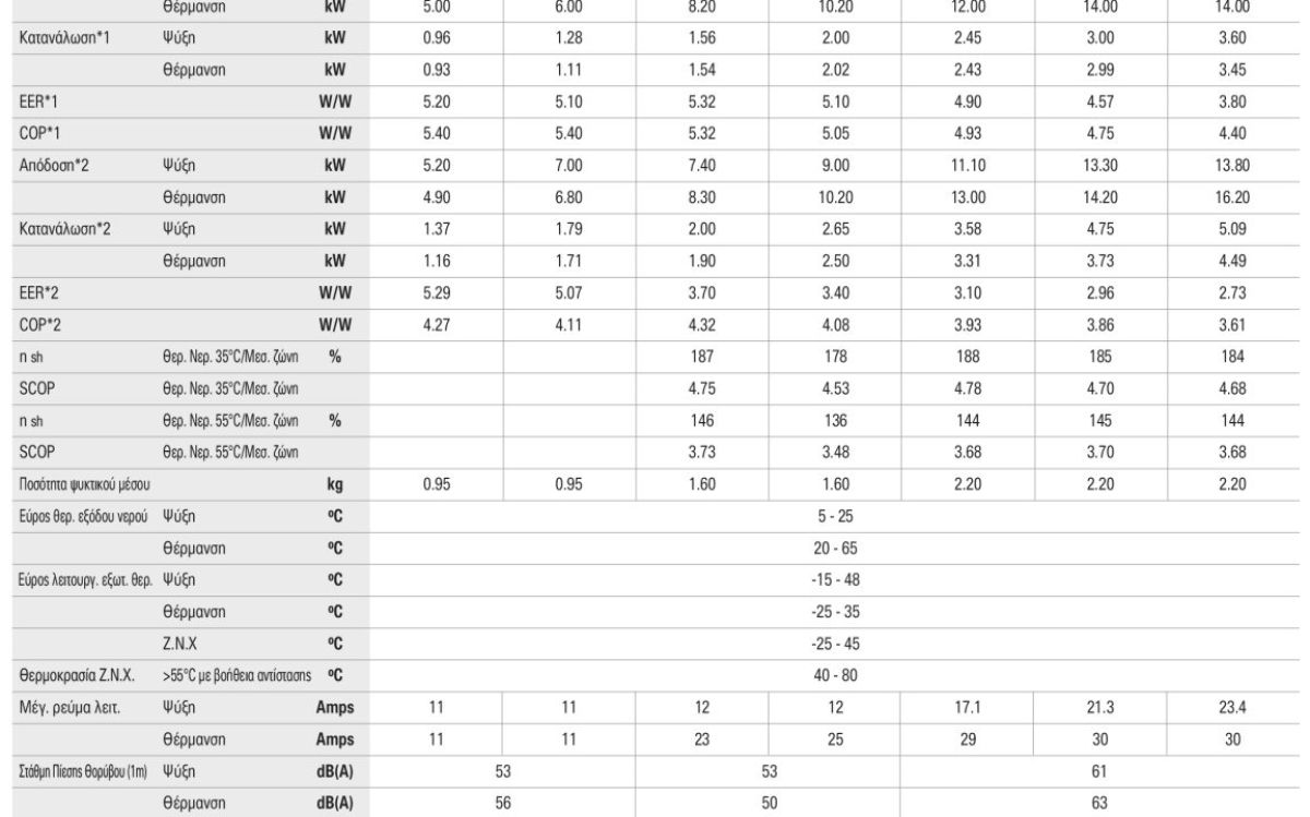 Για θέρμανση το εύρος θερμοκρασίας περιβάλλοντος είναι -25~35 oC